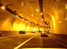 The Vista Ridge Tunnels are highway tunnels through the Tualatin Mountains ("West Hills") of Portland, Oregon, United States. Located in the Goose Hollow neighborhood,[1] the tunnels pass through a hillside locally known as Vista Ridge which is a half mile (1 km) west of downtown Portland. Sunset Highway, also known as U.S. Route 26, is carried through the tunnels, three lanes in each direction. They are Oregon's busiest tunnels.