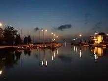 The Vistula Lagoon (Polish: Zalew Wiślany; Russian: Калининградский залив, transliterated: Kaliningradskiy Zaliv; German: Frisches Haff; Lithuanian: Aistmarės) is a brackish water lagoon on the Baltic Sea roughly 56 miles (90 km) long, 6 to 15 miles (10 to 19 km) wide, and up to 17 feet (5 m) deep, separated from the Gdańsk Bay by the Vistula Spit.