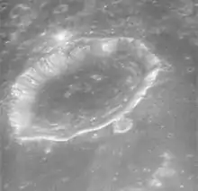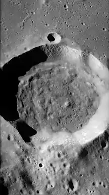 Vitruvius is a small lunar impact crater that lies on the northern edge of the Mare Tranquillitatis. To the east is the crater Gardner, and to the northeast is Fabbroni. To the north-northwest is the elongated Mons Vitruvius mountain, and beyond is the valley where the Apollo 17 mission landed.