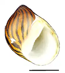 ![]() Abapertural view of a shell of Vittina turrita. Scale bar is 10 mm. |
