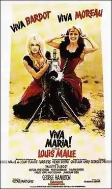 Viva Maria! is a 1965 adventure comedy film starring Brigitte Bardot and Jeanne Moreau as two women named Maria who meet and become revolutionaries in the early 20th century. It also starred George Hamilton as Florès, a revolutionary leader. It was co-written and directed by Louis Malle, and filmed in Eastman Color. The costumes were by Pierre Cardin.