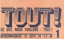 ![]() The headline of the no. 1 of Tout! published by Vive la révolution. | |
