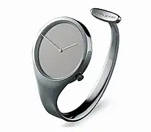 In 1948, saying that she didn't want to design jewelry for the wives of wealthy men to keep locked up in private, Torun began making what she called "anti-status jewelry" out of twisted silver wire embellished with crystals and stones. In 1959, she designed the Mobius necklace, which included a lead crystal drop to be draped over the shoulder of the wearer. It was described by Barbara Cartlidge, author of the reference book Twentieth Century Jewelry, as a "milestone in the history of modern jewelry." In 1962, Torun designed a stainless steel bangle-style wristwatch for an exhibition at the Musée des Arts Décoratifs in Paris.[3] It later became the first wristwatch to be produced by the world-renowned Danish silver company Georg Jensen.[5]