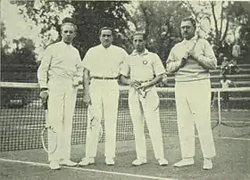 ![]() from left:Jenő Pétery, Béla von Kehrling, Landau and René Gallèpe in the Hungary-Monaco 1929 Davis Cup tie | |