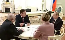 On 10 January 2018, Putin's election headquarters held its first organizational meeting.[47] Putin was present and announced the leaders of the headquarters: head of Kamaz Sergey Kogogin; head of Sirius center for gifted children Yelena Shmelyova; and CEO of Rogachev National Medical Research Center for Pediatric Oncology Alexander Rumyantsev.[48]