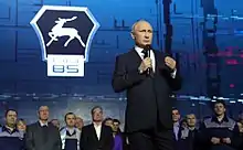 It was assumed that Putin would announce his nomination on 14 December 2017, during his annual press conference.[7] However, at the beginning of December 2017, some experts said that Putin would announce his participation in the elections on 6 December, during the Volunteer of Russia 2017 awards. Putin's press Secretary Dmitry Peskov, commenting on these reports said that Putin could announce the nomination any day. On 6 December, after the presentation of awards, Putin declined to answer the question about participation in the elections, saying that in the near future he will decide on whether to participate in the election.[8] A few hours later, speaking to the workers of the GAZ automobile plant, Putin announced that he will again run for president.[9]
