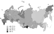 The greatest result Putin received in Sevastopol, Chechnya, Tuva, Crimea, Kabardino-Balkaria and Dagestan, in each of these regions he gained more than 90%. The least result Putin received in Yakutia and Altai Krai, in these regions he scored a little more than 60%.[61]