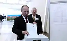 On 18 March, Vladimir Putin voted in the presidential election. He voted at a traditional polling station located in the building of the Russian Academy of Sciences.[29]