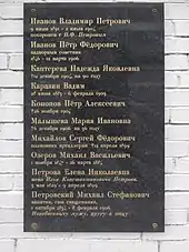 Vladimir Ivanovich was buried in the Smolensky Orthodox Cemetery, his grave was lost over time,[4] but in the 2010s the search group Memorial, Educational and Historical and Cultural Center "Beloye Delo" located his grave on Straight Track, plot 173;[5] next to the grave of his wife Elena Konstantinovna.[3] In 2017, the Saitov's family burial was restored by the Sobor Limited Liability Company, and in December of the same year, a funeral service was served at their graves by Archpriests Igor Yesipov and John of Moscow.[3]