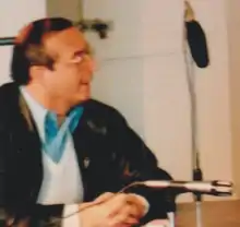 Vladimiro Lenin Ilich Montesinos Torres (born 20 May 1945) is a former long-standing head of Peru's intelligence service, National Intelligence Service (SIN) and was reportedly the de facto leader of Peru while President Alberto Fujimori served as a figurehead leader.[1][2] Montesinos had strong connections with the Central Intelligence Agency (CIA) for over 25 years and was said to have received $10 million from the agency for his government's anti-terrorist activities, with international bank accounts possessed by Montesinos reportedly holding at least $270 million.[3][4][5] The United States reportedly supported the candidacy of Fujimori during 1990 Peruvian general election due to his links to Montesinos[6][7] and ignored human rights abuses performed under Montesinos during the 1990s.[8] In the year 2000, the infamous "Vladi-videos" came to light through the television: they were secret videos recorded by Montesinos that showed him bribing elected congressmen into leaving the opposition and joining the pro-Fujimori group of the Congress. The ensuing scandal caused Montesinos to flee the country and prompted Fujimori's resignation.