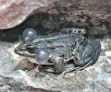 The vocal sac is the flexible membrane of skin possessed by most male frogs and toads. The purpose of the vocal sac is usually as an amplification of their mating or advertisement call. The presence or development of the vocal sac is one way of externally determining the sex of a frog or toad in many species; taking frogs as an example;