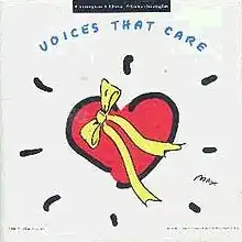 "Voices That Care" is a 1991 song written by David Foster, Linda Thompson, and Peter Cetera and recorded by a supergroup of popular musicians, entertainers and athletes.[2] The song was released as a single on March 13, 1991 by Giant Records. The song was produced by Foster. The group of people involved was also collectively known as Voices That Care and was shown as such on the single release and marketing materials. The charity single and supporting documentary music video were intended to help boost the morale of U.S. troops involved in Operation Desert Storm, as well as supporting the International Red Cross organization.[2] The documentary, which followed the recording of the single to the music video's presentation to the troops in the Middle East, aired on Fox on February 28, 1991,[3] coincidentally the day fighting in Desert Storm ended.[4]