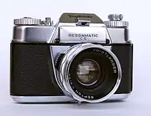 The Bessamatic was a line of 35mm SLR cameras made by Voigtländer in the 1960s, featuring a selenium meter. It uses a leaf shutter, similar to competing SLR cameras manufactured by Kodak (Retina Reflex) and Zeiss Ikon (Contaflex SLR) in Germany, rather than the focal plane shutter almost universally adopted by Japanese SLRs such as the contemporary Nikon F and Pentax Spotmatic. The Bessamatic was supplemented by the Ultramatic in 1963, which used the same lens mount and added a shutter-priority autoexposure mode.