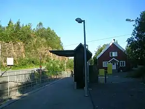 Voksenkollen is a station on the Holmenkollen Line (Line 1) of the Oslo Metro. It is the penultimate station on the line, between Lillevann and Frognerseteren. It is also the second highest station on the network, 460 meters (1,510 ft) above mean sea level. The station was opened on 16 May 1916 when the line was extended from Besserud (then called Holmenkollen) to Frognerseteren.[1]