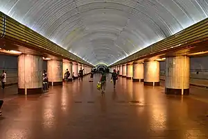 Vokzalna (Ukrainian: Вокза́льна) is a station on Dnipro Metro's Tsentralno–Zavodska Line. The station is the eastern terminus of the line and was opened on 29 December 1995. However, once the nearby Teatralna station will be completed, it will cease being the eastern terminus.