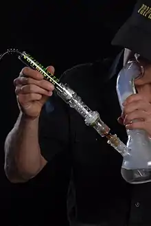 Vaporizers can be used to inhale other recreational drugs as well. A wide variety can be consumed this way, either dissolved in e-liquid or vaporized directly.[48] The use of e-cigarettes to inhale the psychedelic drug DMT has been reported.[49]