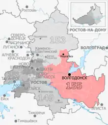 The Volgodonsk constituency (No.155[lower-alpha 1]) is a Russian legislative constituency in Rostov Oblast. The constituency covers much of eastern Rostov Oblast.