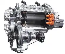 The 2014–2016 model year e-Golf has a traction motor (designed EEM 85) and single-speed gearbox (EQ 270)[35] with an output of 85 kW (114 hp) / 270 N⋅m (200 lbf⋅ft) in "Normal" mode; using "Eco" and "Eco+" mode reduces power / torque output to 70 kW (94 hp) / 220 N⋅m (162 lb⋅ft) and 54 kW (73 hp) / 175 N⋅m (129 lb⋅ft), respectively; both Eco and Eco+ disable the air conditioning system.[37][41][42] In addition, four different levels of regenerative braking can be selected.[36]:14 The standard on-board AC charger has a maximum input power rating of 3.6 kW; as an option, DC fast charging using a Combined Charging System (CCS) connector is available, accepting DC power at a maximum rate of 40 kW.[36]:27–28 The DC fast charging option also upgrades the on-board AC charger to 7.2 kW.[43]