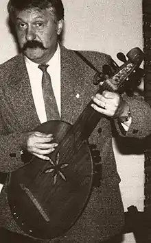 Volodymyr Kushpet (born 1948) is an influential Ukrainian baritone singer, and player on torban, kobza, bandura and lira, he is noted for reconstruction of traditional playing techniques on these instruments. He is the author of a primer for these instruments and an in-depth study of the institution of Kobzar Guilds, associations of itinerary blind singers in Ukraine.