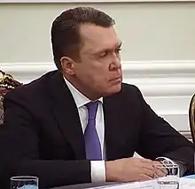 Volodymyr Petrovych Semynozhenko (Ukrainian: Володи́мир Петро́вич Семино́женко) (born 9 June 1950) is a Ukrainian politician and scientist. Semynozhenko is a former Vice Premier Minister of Ukraine (in 1999, 2001–2002 and in 2010[1][2][3]) and head of the Association of Ukrainian Scientists, and is now a member of the Board of the National Academy of Sciences, and served as the Chair of the Parliament Committee on Sciences and Technology. He is also the author of Ukrainian Legislation on Technology Parks. Semynozhenko was the party leader of the Party of Regions from late 2001 until early 2003.[4][5] Since March 2009 Semynozhenko is party leader of the party New Politics.[6][7] In addition, he created and served as the Head of the Ministry of Sciences and Technologies of Ukraine from 1996 to 1998, and has led numerous technology and innovation Committees in the Cabinet of Ministers.