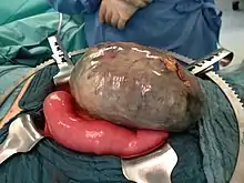 In a cecal volvulus, the cecum may be returned to a normal position and sutured in place, a procedure known as cecopexy.[1] If identified early, before presumed intestinal wall ischemia has resulted in tissue breakdown and necrosis, the cecal volvulus can be detorsed laparoscopically.[16] It has been associated to several diseases, including Huntington's disease.[17]