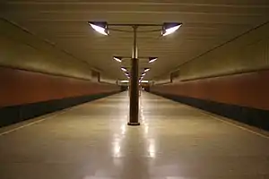 Volzhskaya (Russian: Волжская) is a station on the Moscow Metro's Lyublinsko-Dmitrovskaya Line. The station was opened on 28 December 1995 as the final part of the first stage of the Lyblinsky radius and was the line's terminus for just under a year. Just behind the station a former cross junction tunnels can still be seen.