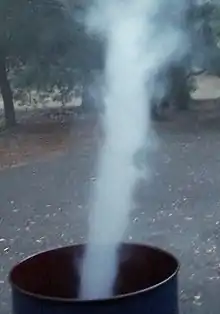The application proposed by Louat in his patent claims is to provide a less-expensive alternative to a physical solar updraft tower. In this application, the heat is provided by a large area of ground heated by the sun and covered by a transparent surface that traps hot air, in the manner of a greenhouse. A vortex is created by deflecting vanes set at an angle relative to the tangent of the outer radius of the solar collector. Louat estimated that the minimum diameter of the solar collector would need to be 44+ metres in order to collect "useful energy". A similar proposal is to eliminate the transparent cover.[3] This scheme would drive the chimney-vortex with warm seawater or warm air from the ambient surface layer of the earth. In this application, the application strongly resembles a dust devil with an air-turbine in the center.