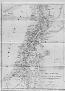 The first volume of Voyage en Orient reports Lamartine’s travels through modern day Lebanon. His journey began on 11 July 1832 when he left Marseilles with his wife and daughter. They arrived in Beirut on 6 September of the same year. During this trip, Lamartine wrote extensively about his encounter with Lady Hester Stanhope and Bashir Shihab II.[1]