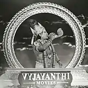 Aswani Dutt started his film career as an executive producer for a black and white film directed by K. Viswanath.[4] He wanted to produce a film with his favourite actor N. T. Rama Rao (NTR) and approached him.[5] Named by NTR, Vyjayanthi Movies commenced production, under the proprietorship of Aswani Dutt with the successful film, Eduruleni Manishi in 1975.[2] The logo of the production house contains the image of NTR as Lord Sri Krishna, with a Sankha in his hand and Earth behind him.