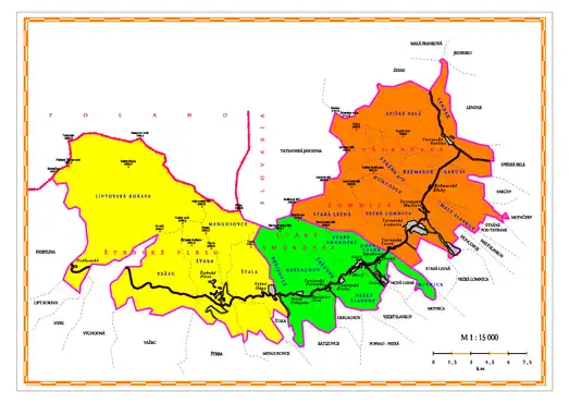 | note1 The settlement itself was transferred to the village of Štrba, according to the ruling of the Supreme Court.[5] note2 Partly in the village of Pribylina. | ||||