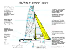 The Wētā 4.4 Trimaran is a 4.4 metre (14 foot) sailing dinghy conceived and developed in New Zealand from 2001-2006 by Roger and Chris Kitchen and others with original drawings by TC Design's Tim Clissold.