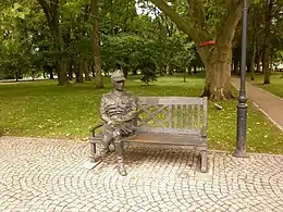 A number of poems dedicated to Sikorski were written by Polish authors during the war.[5] In its aftermath, in the People's Republic of Poland, Sikorski's historic role, like that of all the adherents of the London government, would be minimized and distorted by propaganda, and those loyal to the government-in-exile would be liable to imprisonment and even execution. In time, restrictions on discussing Sikorski began to ease; on a centennial anniversary of his birth in 1981, commemorative events were held on the Rzeszów Voivodeship, including an academic conference, and revealing of plaques in Nisko and Leżajsk.[5] Ryszard Zieliński published a novel on him, Wejście w mrok (1971), and in 1983 a movie, Katastrofa w Gibraltarze by Bohdan Poręba, was made.[5] The Polish government-in-exile, of which Sikorski was the first prime minister, would continue in existence until the end of communist rule in Poland in 1990, when Lech Wałęsa became the first post-communist president of Poland.[39] On 17 September 1993 a statue of Sikorski, sculpted by Wiesław Bielak, was revealed in Rzeszów.[5] In 1995, Sikorski became the patron of the newly formed Polish 9th Mechanized Brigade.[40] In 2003, the Polish parliament (Sejm) declared the year (60th anniversary of Sikorski's death) to be the "Year of General Sikorski".[4] A number of streets and schools in Poland bear Sikorski's name.[5]