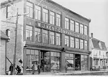 In the early 1880s, W.J. Kent worked in the company store of the West Bathurst lumber firm of R.A. and J. Stewart. Wanting to open his own store, Kent went to Saint John to study at Kerr's Business College.[1] In 1884, at the age of 23, Kent opened a small wood-frame store in downtown Bathurst and organized W.J. Kent & Company, Ltd. Catering primarily to the local farming community, it was the first general goods store in the area that was not owned by one of the large mining or lumber companies.[6] The store proved popular, and in 1901, Kent built a larger brick building at 150 Main Street to house his growing enterprise. In 1914, the store was expanded again, and a third story was added to the complex creating what was then the largest department store in New Brunswick.[6]
