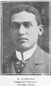 William Stitt Peters (May 1867 – April 2, 1933) was an American baseball, player, manager, and owner who played in predecessor teams to the Negro leagues. Peters played first base and managed the Chicago Unions from 1887 to 1900.[1] After owner Frank Leland moved many of the team's players to the Chicago Union Giants, Peters formed his owned team, the Peters Union Giants. He ran the club until 1923.[2]