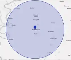 WDSW-LP can be heard reliably for a 8-10 mile radius around Delta State University.[1] On good days, the station can be received as far north as Alligator (23 miles), Benoit (18 miles) to the southwest, Drew (12 miles) to the northeast and Doddsville (13 miles) to the southeast.[9][10][11][12]