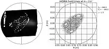 The first set of data was the characterization of the magnetic flux lines on the machine. This used an in-house electron beam and fluorescing rod method, which was originally developed on WEGA for W7-X, to see what the magnetic field shape, and thus plasma shape, would look like. The beam would be scanned across the minor radius of the vacuum vessel and the rod swept through the vessel. Anywhere an electron beam hit the rod it would light up. a sensitive astronomical camera was used to image the flux surfaces and compare them to a ray-tracing code to see the validity of the plasma and any error fields present. Some gas could also be bled in to visually see the electron beams themselves.[25]