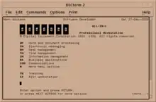 ALL-IN-1 was designed and developed by Skip Walter, John Churin and Marty Skinner from Digital Equipment Corporation who began work in 1977.[3] Sheila Chance was hired as the software engineering manager in 1981. The first version of the software, called CP/OSS, the Charlotte Package of Office System Services, named after the location of the developers, was released in May 1982.[4] In 1983, the product was renamed ALL-IN-1 and the Charlotte group continued to develop versions 1.1 through 1.3.