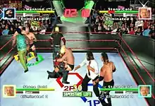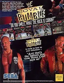WWF Royal Rumble is a professional wrestling video game released in 2000 for arcades and the Dreamcast. THQ published the title for the Dreamcast while Sega released it for arcades. It is based on the World Wrestling Federation (WWF) professional wrestling promotion and its yearly Royal Rumble event, this game is based on the 2000 edition.[3] Yuke's, creators of the WWF SmackDown! series developed Royal Rumble, which had several unique features including support for up to nine wrestlers on the screen simultaneously.[4] The game is also based on the pay-per-view Royal Rumble (2000).