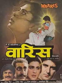 Waaris (transl. Heir) is a 1988 Indian Hindi-language film directed by Raveendra Peepat. It stars Smita Patil, Raj Babbar, Amrita Singh, Raj Kiran in lead roles. The film was adapted from the Punjabi novel Kaara — Hatthi by Sohan Singh Hans (as credited in the film). Audience had a mainstream story with some Masala quality entertainment. Hindi film actress Rekha dubbed the lines for late actress Smita Patil who died before the film's release. Patil won the Best Actress trophy at the 2nd Star & Style-Lux Awards.[1]