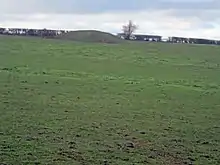 In a field are remains of a motte and moat; buried foundations are all that remain of stone defences.[1]