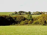 Sir John Wadham, Justice of the Common Pleas (1389–1398) (said by Pole, apparently in error, to have been Justice of the King's Bench), MP for Exeter in 1399 and for Devon in 1401.[21] He was one of Prince's Worthies of Devon.[22] Although Pole (followed by Prince (died 1723))[23] stated him to be the son of Sir John Wadham above, his modern History of Parliament biographer,[21] perhaps unaware of Pole as Prince's source, suggested he was the son of Gilbert Wadham, who in 1383 quitclaimed to him a rent in Wadham, which deed was witnessed by Sir John's close friend Sir William Hankford (c. 1350 – 1423) of Annery in Devon, Chief Justice of the King's Bench from 1413 until 1423. He acquired much land in Devon, Somerset, Dorset and Gloucestershire, which were valued at £82 per annum in an incomplete survey of 1412 and valued at about £115 in his inquisition post mortem in 1412. His Devon landholdings included the manors of Silverton and half the manor of Harberton (both purchased, in 1386 and 1390 respectively, from Cecily Turberville, sister and heiress of John de Beauchamp, 3rd Baron Beauchamp of Hatch) (1329–1361)) and Lustleigh and he acquired over 300 acres of land in Branscombe and elsewhere. Silverton, like Edge, descended to the Wyndham family and Silverton Park (alias Egremont House), a large neo-Classical mansion, was built there in 1839–45 by George Wyndham, 4th Earl of Egremont (1786–1845) and demolished in 1901. His landholdings in Somerset were even more extensive than those in Devon and mostly consisted of properties forfeited by Sir John Cary, Chief Baron of the Exchequer. These lands included Hardington Mandeville, a moiety of Chilton Cantelo, and premises in Trent (now in Dorset) he purchased jointly with Hankford in 1389. These large landholdings in Somerset appear to have moved his principal interest away from Devon and the manor of Edge, and towards the end of his life he made his principal residence at Merryfield, Ilton, near Ilminster, Somerset, which he had purchased from Cecily Turberville.[24] At Merryfield he built a substantial fortified manor house, demolished after 1618, of which only the rectangular moat survives today in the middle of agricultural land south of RAF Merryfield aerodrome.[25] He married Joan Wrothesley.