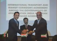 The Chabahar Agreement is the first multilateral transit and transport agreement of its kind that Afghanistan signs with other countries. It basically connects South Asia with Central Asia, and Gulf region with Central Asia and Caucasus markets. The ports in Chabahar will considerably cut transportation costs and time.[23]