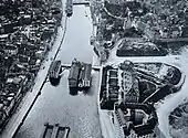 The buildings was rebuilt for a last time between 1868 and 1878, and probably the present Giacometti entrance area in 1890,[5] and the last original structures of the Oetenbach nunnery may have been removed by as original 1901 plans by Ferdinand Curti and Hermann Fietz suggest.[6] The lack of space and the separation of prisoners by criminal categories ordered by the then new criminal law, initiated the design and construction of a new detention center for modern principles, and so in the night of 8 to 9 October 1901, the prisoners were moved to the new prison Pöschwies in Regensdorf. In the same year, the remaining monastery area passed into the possession of the city of Zürich. The remaining Oetenbach building were broken in 1901/02, but the Waisenhaus, meaning orphanage, was preserved in favor of an administrative center, that in 1904/1905 took place at the former Sihlbühl which then was separated by the easterly Uraniastrasse and the building complex housing the Urania Sternwarte.
