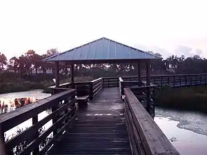 The Wakodahatchee Wetlands is a park located in Delray Beach, Florida. The park was created on 50 acres (20 ha) of unused utility land and transformed into a recreation wetlands open to the public with a three-quarter mile boardwalk that crosses between open water pond areas, emergent marsh areas, shallow shelves, and islands with shrubs and snags to foster nesting and roosting. The boardwalk has interpretive signage as well as gazebos with benches along the way. This site is part of the South section of the Great Florida Birding Trail and offers many opportunities to observe birds in their natural habitats.