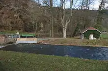 In the north-east of the district, the sand trap is located on the river Dreisam; here, the river was channelled into a basin to let the sand and gravel that has been carried along settle. This facility does not exist anymore. At this point, there is a bridge leading over the river. Directly westwards the bridge, at the left side of the river bank, a power station was constructed in 2008. This powerhouse produces around 300,000 kWh of electricity per year, which can cover the demand of 120 households. The hydropower screw turbine, which produces the electricity, is eight metres long and has a diameter of 3.10 metres. Therefore, it is one of the largest facilities of this kind in Germany.