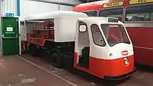 In 1961, the company added a 5-wheeled articulated milk float to their range, designed for a payload of 2 long tons, and known as the Loadmaster 2 tonner. Only 18 were ever built,[8] before production ceased in 1966. One of them remained in service with United Dairies until 1992, by which time it was based in Eastbourne. The trailer was rebuilt from an open-sided dairy vehicle to an enclosed box van in 1985, and on withdrawal, it was donated to the Wythall Transport Museum,[9] who have since rebuilt the trailer in its original form.