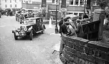The 1953 event was included as the third round of the inaugural European Touring Championship and included nine tests and part of the route was a secret.[16] The tests included acceleration and braking held at Silverstone, night driving at Castle Combe, a night climb of Prescott Hill, a speed test at Goodwood and a new 'garaging' test at Llandrindod Wells which involved driving into a garage and parking, leaving the garage on foot then proceeding to return and reverse out of the garage, all against the clock.[17][18] An official winner was declared for the first time, Ian Appleyard, driving a Jaguar XK120.