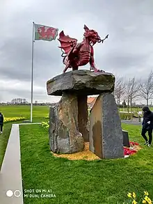 The First World War (1914–1918) saw a total of 272,924 Welshmen under arms, representing 21.5 per cent of the male population. Of these, roughly 35,000 were killed,[4] with particularly heavy losses of Welsh forces at Mametz Wood on the Somme and the Battle of Passchendaele.[5]