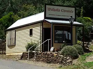 Walhalla is a town in Victoria, Australia, founded as a gold-mining community in late 1862, and at its peak, home to around 4,000 residents.[2] As of 2016, the town has a population of 35 permanent residents, though it has a large proportion of houses owned as holiday properties.[3] It attracts large numbers of tourists and is a major focus of the regional tourism industry.[4] The town's name is taken from an early gold mine in the area, named for the German hall of fame, the Walhalla temple (Valhalla from Norse legend).[3]