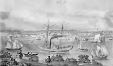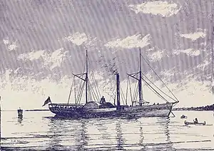 Walk-in-the-Water was a sidewheel steamboat that played a pioneering role in steamboat navigation on the Great Lakes. She was the first such craft to run on Lake Erie, Lake Huron and Lake Michigan.[1] Launched in 1818, she transported people and supplies to sites and points of interest around the Great Lakes, before being grounded and wrecked in a gale force storm in Buffalo's bay in 1821. According to some sources, Walk-in-the-Water's name originated from an Indian's impression of a steamboat moving ("walking") on the water with no sails.[2][3]